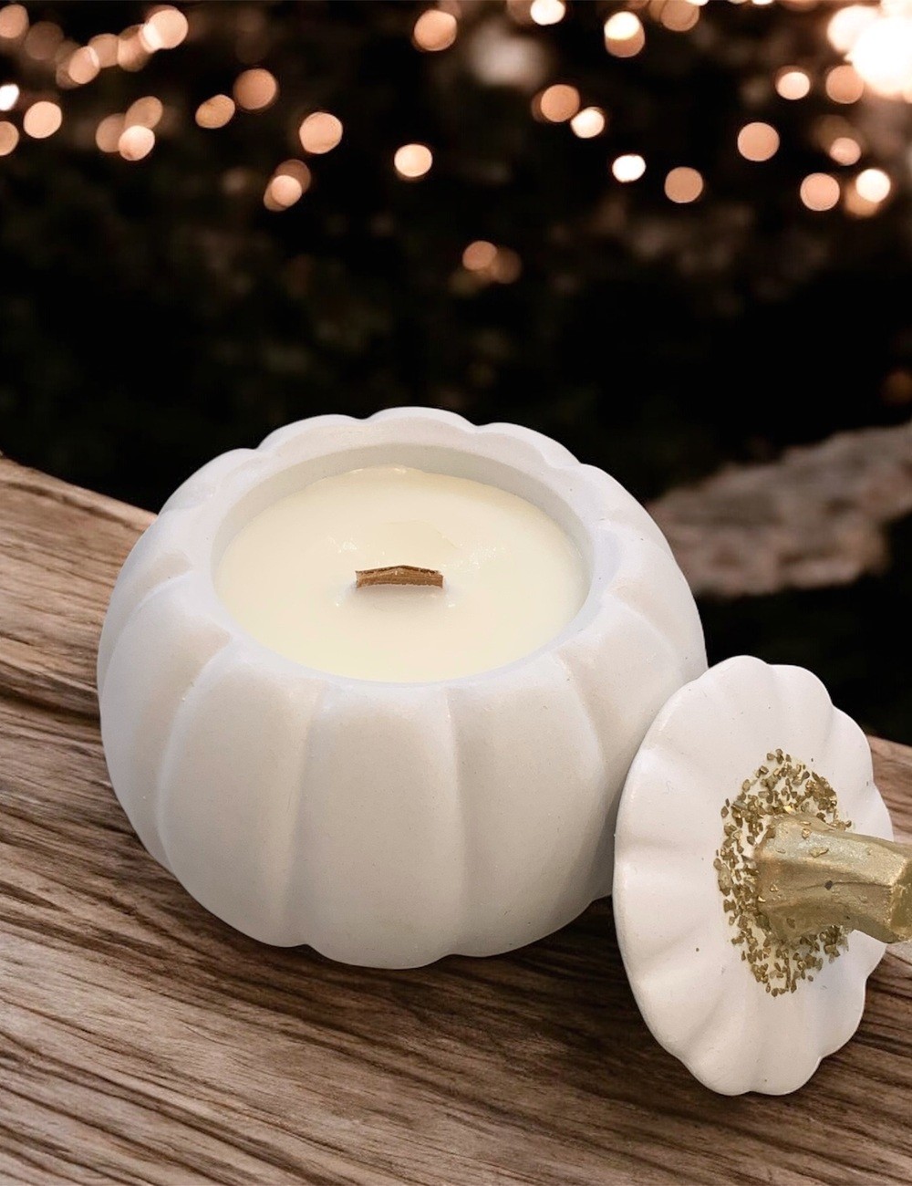 Χριστουγεννιάτικο κερί από φυτικό κερί σόγιας και υψηλής ποιότητας αρωματικά έλαια με ξύλινο ή βαμβακερό φυτίλι σε δοχείο με εντυπωσιακό σχήμα κολοκύθας. Ιδανική επιλογή για δώρο την εορταστική περίοδο. Συνδυάστε με τα υπόλοιπα διακοσμητικά κεριά της Χριστουγεννιάτικης συλλογής και φτιάξτε μια ωραία σύνθεση για την γιορτινή τραπεζαρία σας ή οποιαδήποτε γωνιά του σπιτιού σας. |